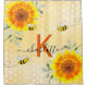 Bumble bees sunflowers yellow honeycomb monogram shower curtain