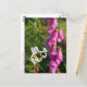Photo of foxglove, drawing of bumblebee carrying pollen in black ink pen