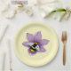 A cute bumblebee gently sits among two delicate lavender flowers and fresh green leaves, all set against a soft creamy yellow backdrop. Perfect for a wedding that celebrates love and the beauty of the outdoors.
