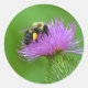 This sticker features a bumble bee gathering nectar from a purple thistle blossom.