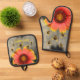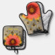 Bumblebees and Orange Gaillardia Sunflower Floral Oven Mitt & Pot Holder Set