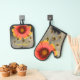 Bumblebees appear to be catch in flight and lured to the bright orange Gaillardia blossom on this naturally beautiful kitchen set of oven mitt and pot holder The big yellow and black bumblebees and vibrant orange sunflower make these pot holder and oven mitt, as a set or individually, bright, colourful and fun. May be personalised with a Name. Also see a coordinating apron in our Gaillardia Collection.