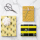 Bumblebees with heart & honeycomb pattern wrapping paper sheet