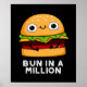 Bun In A Million Funny Burger Pun features a cute adorable burger who knows he's one in a million! Perfect pun gift for family and friends who love cute burger bun puns.