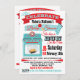 Super cute and modern poster style retro Gender Reveal "Bun in the Oven" baby shower invitations with aqua and red vintage oven with fun typography and illustrations. Hand drawn illustration by McBooboo.