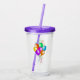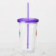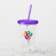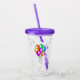 This acrylic drink tumbler with straw and lid has a bunch of bright vibrant balloons in multiple colours tied together with matching hanging streamers on the front and back.