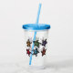 This acrylic drink tumbler with straw and lid has a bunch of fantasy colorful turtles with abstract markings on their shells in colors of red, blue, green, purple, orange, and yellow.