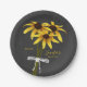 These floral chalkboard style baby shower paper plates feature a ribbon-tied bunch of 3 chalk-drawn Black Eyed Susan flowers with bicolored gold and mahogany petals and custom template text fields - by katz_d_zynes