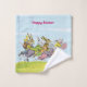This wash cloth for your bathroom has a bunch of Easter rabbits in their dress clothes running in the green grass carrying baskets filled with coloured Easter eggs under a blue sky. Customise the Happy Easter text with the template.