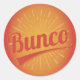 Colourful vintage and retro design features an orange background with orange starburst. Bunco stickers are great for attaching to invitation envelopes, wearing, attached to napkins or other decorations.