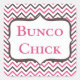 Here is a fun pink and grey graphic Bunco design that features a chevron background pattern. Text read Bunco Chick. Great gift for a birthday, hostess, holiday or a prize.