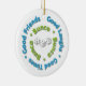 Bunco good friends, good laughs and good times. This graphic design features three white dice and text in blue and green. This makes a great gift or prize.