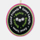 This bunco ornament will make a great gift or prize. Hang from your rear view mirror, in your office on a cupboard knob or holiday tree. Colour scheme is pink, green, white and black. Featured are the words: Good Friends, Good Laughs, Good Times and Bunco. Also included are three dice.