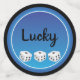 Three lucky white Bunco dice all ready for you to throw and win your Bunco's. Modern blue, white and black design. Customise with your own fun Bunco quotes or your Bunco group name. Perfect for Bunco fundraisers and girls night out!