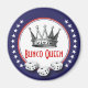 Let the world know that you are the Bunco Queen. Red,white and blue with white stars,vintage crown for the Bunco Queen and three white Bunco dice.
