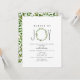 A neutral winter baby shower invitation featuring the phrase "Bundle of Joy" with an illustration of a green wreath incorporated into lettering in place of an "O". Opposite side features green leaf design. Customise the text with details of your occasion.