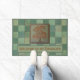 Doormat for Craftsman Bungalow. This doormat looks like Craftsman tiles ( the kind on fireplaces). It features several shades of green squares. It has an image of an Oak Tree tile. You can customise this with your own clever or serious message. This comes from Oregon Tile maker Fay Jones Day.