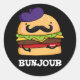Bunjour Funny French Burger Bun Pun Dark BG Classic Round Sticker