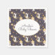 Cute white bunnies with gold crescent moon and star pattern on dark grey for baby shower.