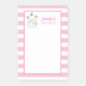 Sticky notes for a baby shower personalised with a name. Set on a pink striped background. A white frame with a pink border layered over top to write inside. An illustration of a mum and baby bunny standing together. Yellow daisies in the background. Whimsical butterflies fluttering about.