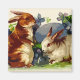 Cute illustration of two bunny rabbits in a field of clover with a dyed Easter egg. Matching card :
