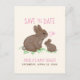 Ask your guests to save the special date of your shower with these adorable, hand-painted mama and baby cottontail bunny rabbits sitting in a patch of clover while emitting floating pink hearts between them! The words "Save the Date" and "Baby Shower" and the name of the mother-to-be are in pink text. On the back of the post card are return address and message templates. Shown here with an ivory coloured background which you can easily change to your favourite colour. If you need help or matching items, please contact me.