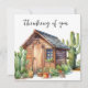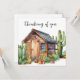 Thinking or you or a thank you flat greeting card adorned by peaceful scenery with cacti in the forefront and background with three hidden bunny rabbits, potted plants and shrubs. Customise the front of this card with your title message and there is room on the back for your signature and special written messages. The reverse of the card also features a saguaro cactus and a bunny. Enjoy!