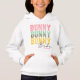 Bunny Babe Cute Modern Girly Easter Personalised Girl's Hoodies features the modern text "Bunny Bunny Bunny Babe" in pink, turquoise and yellow typography and personalised with your name by editing the text in the text box provided. Designed by Evco Holidays www.zazzle.com/store/evcoholidays