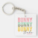 Bunny Babe Cute Modern Girly Easter Personalised Keychain features the modern text "Bunny Bunny Bunny Babe" in pink, turquoise and yellow typography and personalised with your name by editing the text in the text box provided. Designed by Evco Holidays www.zazzle.com/store/evcoholidays