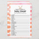Cute, tropical coral stripe, watercolor background for a girly baby shower. A tan bunny appears just above honoree's name.