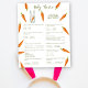 Gender neutral baby shower invitations. Featuring the saying 'A LITTLE BUNNY IS ON THE WAY!', an illustration of a watercolor bunny (rabbit) with carrot in paws, and many orange colour carrots. Matching items available.