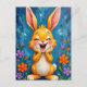 Bring a burst of happiness and charm into your space with this delightful artwork of an adorable, giggling bunny nestled among blooming flowers. The cheerful yellow bunny, beaming with pure joy, is framed by vibrant wildflowers in shades of orange and purple set against a textured blue backdrop. With its blushing cheeks, and joyful expression, this artwork captures the spirit of spring and the innocence of nature in a whimsical, heartwarming style.
