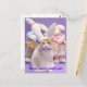 Bubba kitty in white fur, a lavender bow tie and rabbit ears. The text is customisable.