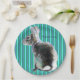 Large paper plates with a bunny design in blue stripes. The name on the plate can be changed to yours, and the bunny has been enhanced. There will be napkins to match. These would also be great for an Easter party.