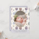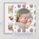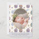 This boho retro girl photo birth announcement card features a cream background with bunny and egg patterns in lavender purple shades. The reverse side features your photos and message. Personalise it for your needs. You can find matching products at my store.