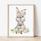 Bunny, Farm Animals, Pink Flowers, Girl Nursery Poster