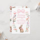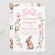 Some bunny is turning one invitation with pink bow and wildflowers, hand drawn bunny and bow.