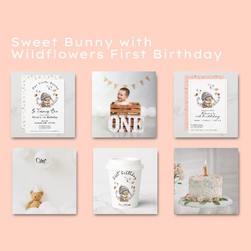 This first birthday invitation for girls features a sweet bunny illustration paired with blooming garden florals and soft wildflower details. Perfect for spring birthday parties, floral themes, and garden or animal-themed celebrations. Easily personalize with the little one’s name and party details. A cute and modern way to welcome guests to your special day.