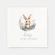 This napkin features a charming watercolor illustration of a cute bunny sitting on grass with flowers around it. Perfect for a gender neutral baby shower.