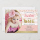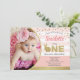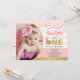 Bunny girl 1st birthday photo invitation pink gold