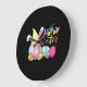 Bunny Gnome Rabbit Eggs Hunting Happy Easter Day Large Clock