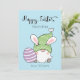 Bunny Gnome With Easter Egg Happy Easter Script Holiday Card - Personalised Easter Greeting