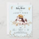 Bunny Hat Rustic Country Baby Shower Invitation - Our Animal theme baby shower gender-neutral invitation template card features a hand-drawn illustration of cute forest animals and more..