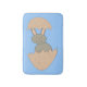 This awesome bath mat features an adorable image of a happy bunny created using vector art. The bunny is grey and it has a big smile on its face. The bunny is hatching from an egg. This weird and funny design is sure to amuse anyone.