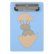 This awesome mini clipboard features an adorable image of a happy bunny created using vector art. The bunny is grey and it has a big smile on its face. The bunny is hatching from an egg. This weird and funny design is sure to amuse anyone.