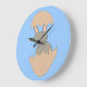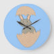 This awesome clock features an adorable image of a happy bunny created using vector art. The bunny is grey and it has a big smile on its face. The bunny is hatching from an egg. This weird and funny design is sure to amuse anyone.