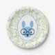 An adorable bunny with glasses adorns this spring party plate in blue and green. It's a great choice for spring and the Easter season. Also a good choice for a children's parties. Matching paper napkins are also available in this design. Bunny graphic courtesy of vecteezy.com.