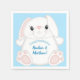 A cute cartoon bunny rabbit that is perfect for a woodland animals baby shower. The blue background makes in perfect for a boy on the way.