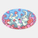 BUNNY RABBIT & COLORFUL HEARTS RAINING VALENTINES OVAL STICKER