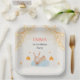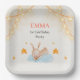 Personalise this awesome bunny rabbit first birthday party paper plate with your party details easily and quickly, simply press the customise it button to further rearrange and format the style and placement of the text as well